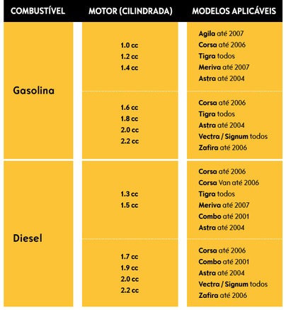 Para veículos Opel já fora de comercialização
